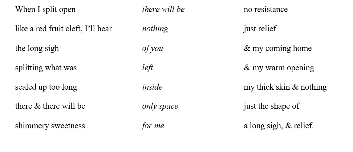 Air sweet as the ripe pears’ sweet meat sliced open.