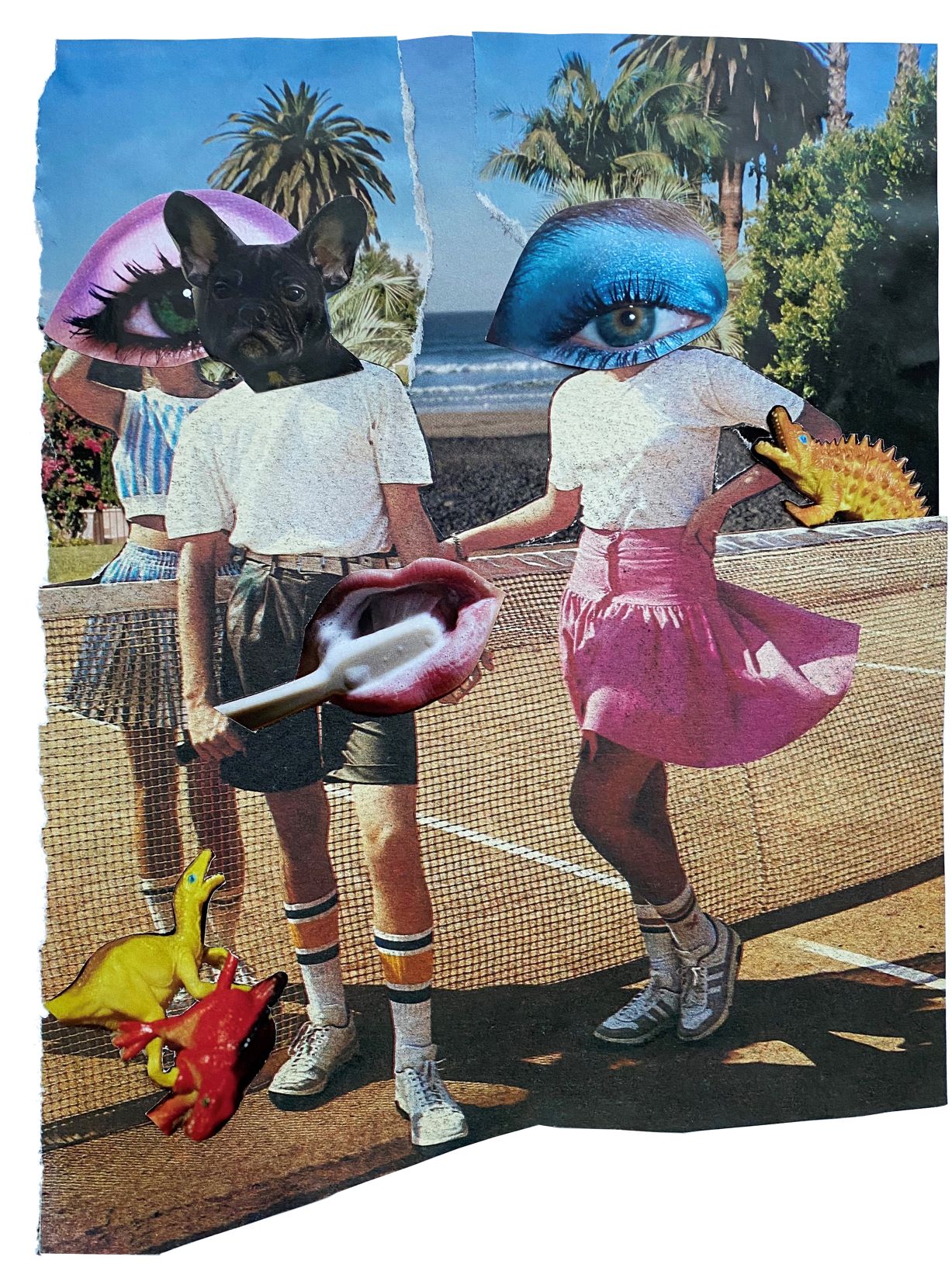 Her narrative is a direct reflection of the modern society witnessed mainly through pop culture and social media. These trigger a humorous scene with a satirical unfolding, that are honest and unfiltered. The distorted Barbie image is complicated, strange, sometimes is serious at other times lacks depth. The doll is often deprived of an individual face, which makes her more relatable; she can be judged or laughed at without guilt. She is human but also imaginary. She is genderless, opinionated and truthful. Masha investigates feminism, sustainability and ongoing events in her collage work.
