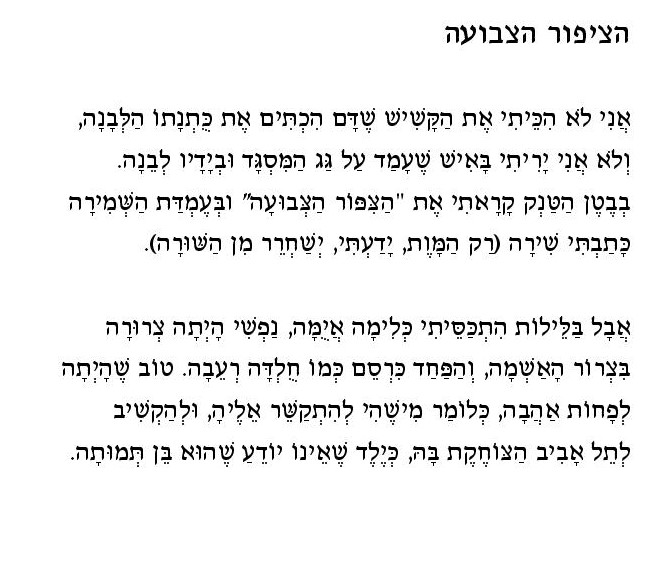 there was at least love, that is, a girl to call and hear Tel Aviv